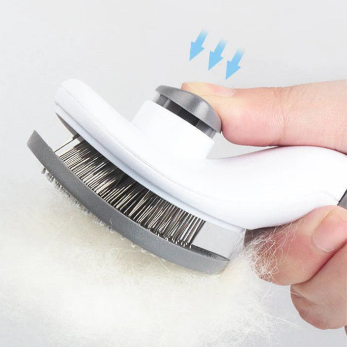 This brush reduces loose fur in your home and improves coat health. It combines grooming and cleaning in one tool.